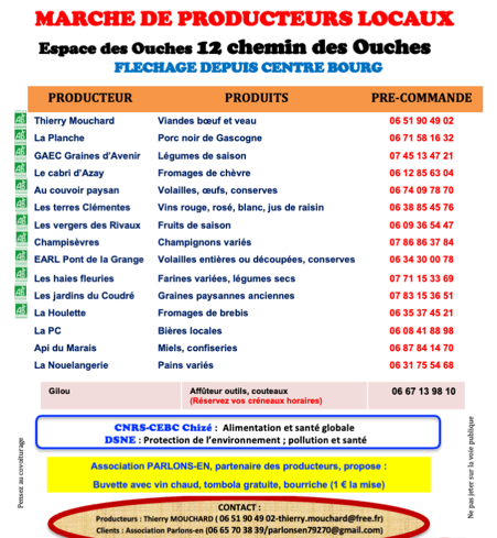 Le marché a lieu à la ferme de 16h à 19h (12 chemin des ouches 79270 Saint Symphorien)